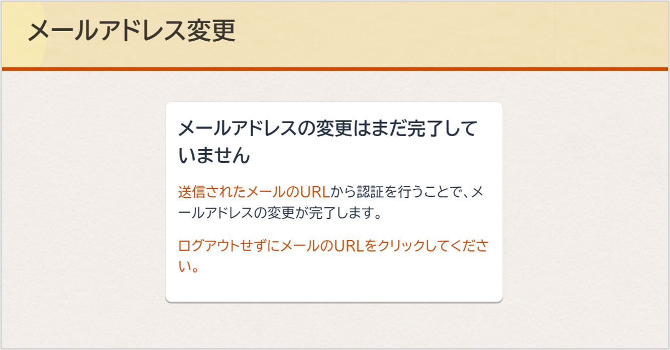 メールアドレス認証メールが送信されます。この時点ではメールアドレスの変更は完了していません。必ず送信されたメールのURLから認証をおこなってください。