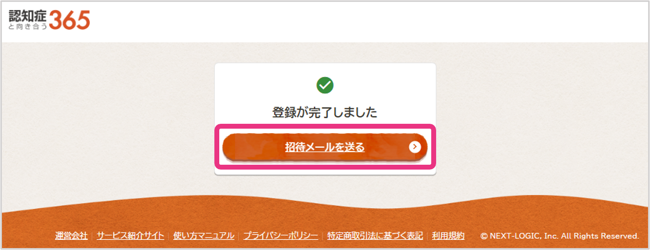 登録完了画面が表示されましたら、 『招待メールを送る』をクリックしてください。