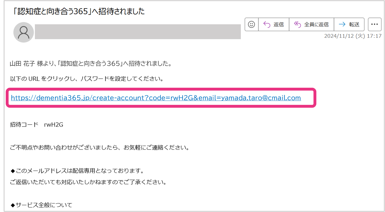 サービスがプレゼントされると招待メールが届きます。メール文中のURLをクリックしてください。