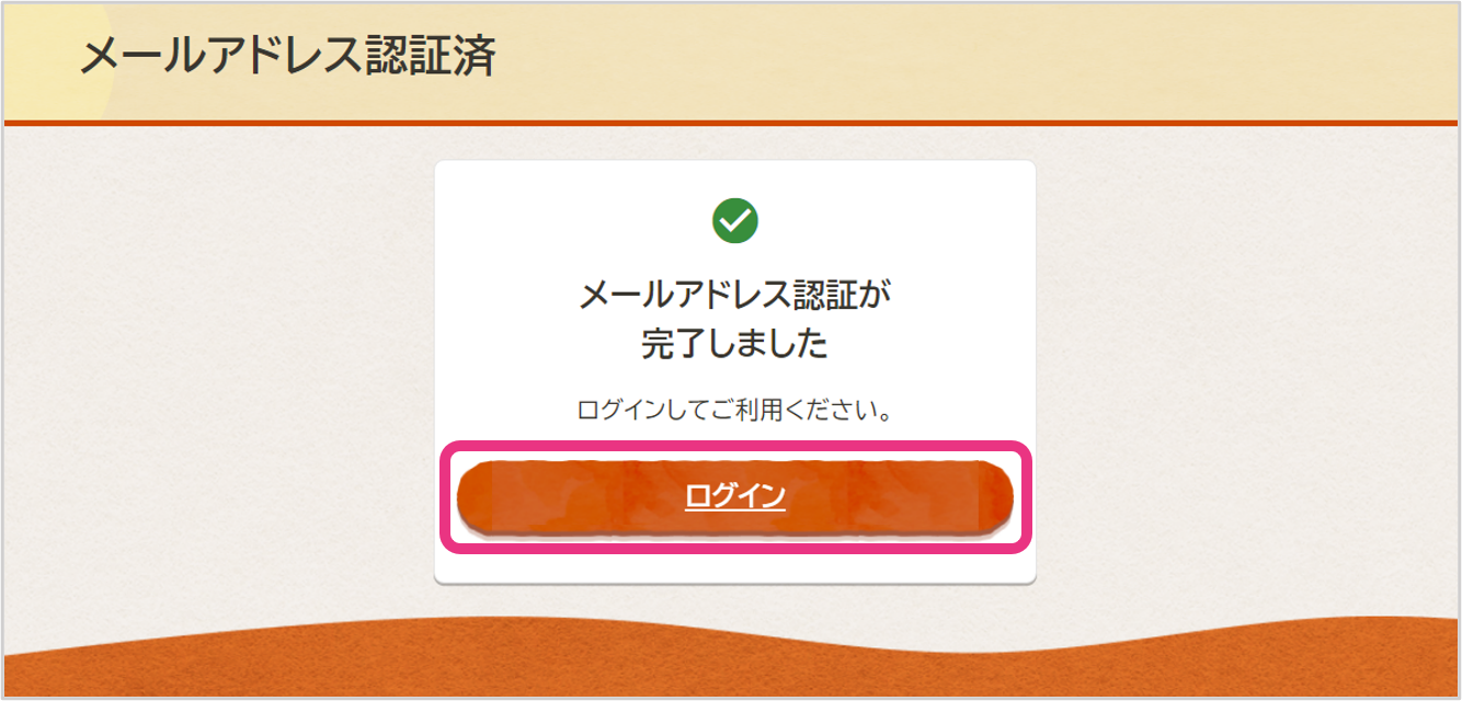 メールアドレス認証が完了したら『ログイン』をクリックしてください。