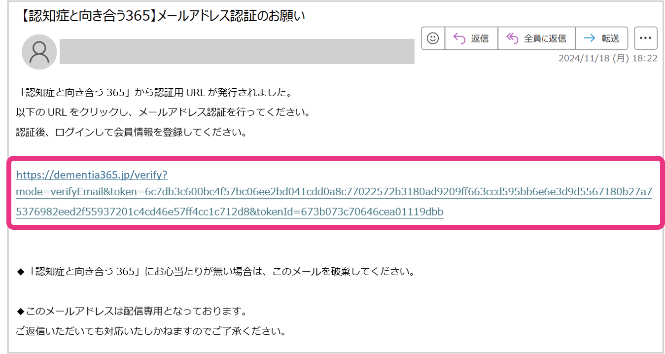 登録案内メールが届きましたら、文中のURLをクリックしてください。