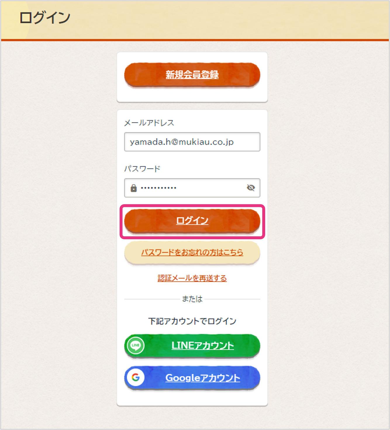 メールアドレスとパスワードを入力し、『ログイン』をクリックしてください。