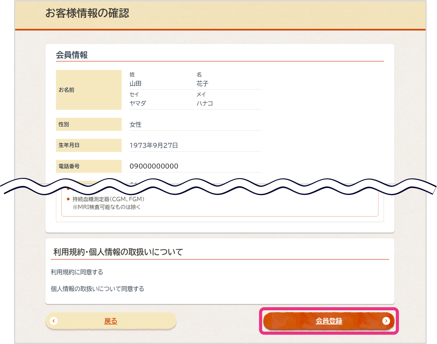 確認画面に進みますので、入力内容に誤りがないことを確認の上『会員登録』をクリックしてください。