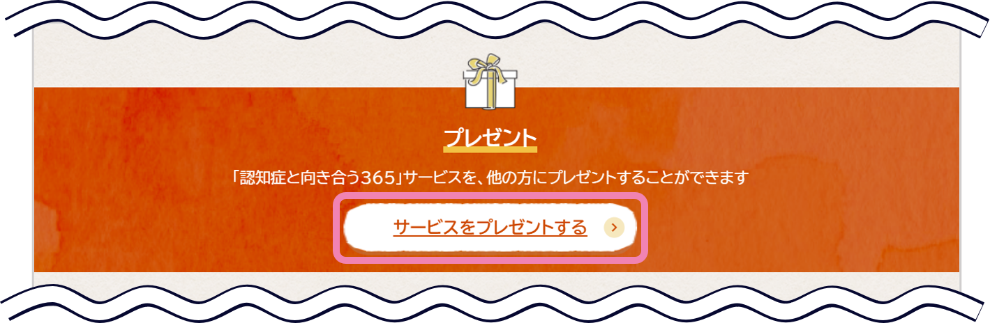 「認知症と向き合う365」サービスを、他の方にプレゼント(招待)することができます。